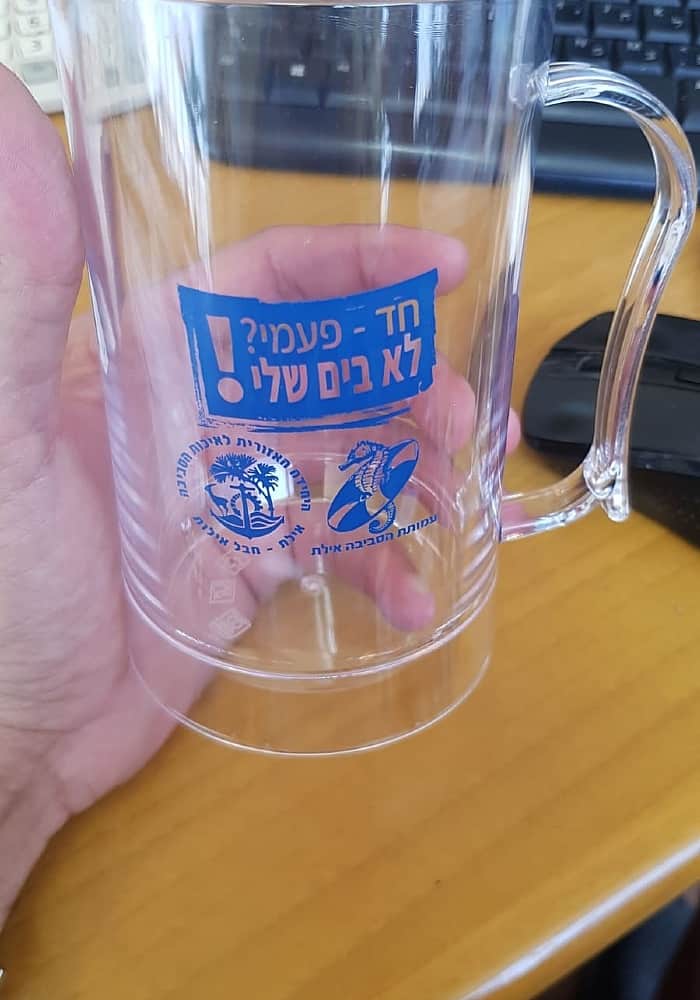 לצד פעולות להפחתת שימוש בקשים וכלים חד פעמיים לאורך החופים פועלים הגופים השותפים, להפחית גם את השימוש בכוסות חד פעמיות. הצעד הראשון יחל כאמור בפסטיבל ג'אז בים האדום, שיתקיים בין התאריכים 25-27.8.19 בנמל אילת. הכוס הרב פעמית העשויה מפוליקרבונט תימכר ב – 10 ₪ אשר יוחזרו למשתמשים בסיום השימוש בכוס. הרוכשים יוכלו לקחת איתם את הכוס ולהשתמש בה בכל מקום אחר. בעצה אחת בין מפיקי הפסטיבל "פורום פקטור" ותאגיד התיירות העירוני, ייהנו רוכשי הכוס הרב פעמית מהנחה של 4 ₪ ממחירי הבירה זאת על מנת לעודד שימוש בכוס הרב פעמית במתחם.