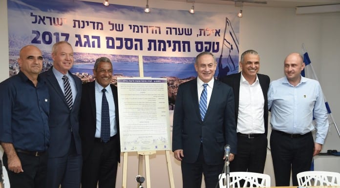 על ההסכם חתמו באילת, ראש הממשלה – בנימין נתניהו, שר האוצר – חה"כ משה כחלון, שר הבינוי והשיכון – חה"כ יואב גלנט, מנהל מרחב דרום ברשות מקרקעי ישראל – ערן ראובני וראש העירייה – מאיר יצחק הלוי. ראש העירייה:...